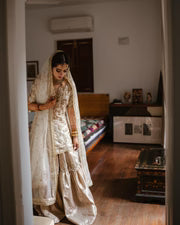 Embodying timeless elegance with intricate craftsmanship, our custom-designed gharara perfectly complemented her radiant beauty on this blessed occasion. 🌸 Â