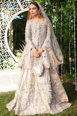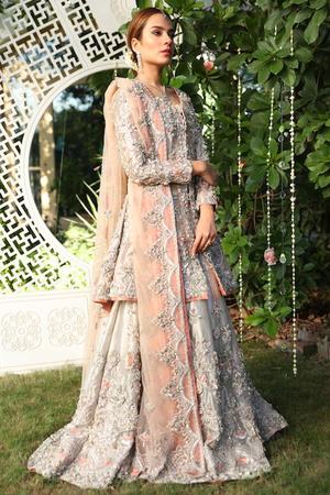 Beautiful bridal collection is geared up with designer waleema dress in rose gold color to add an alluring touch to your wedding wardrobe.