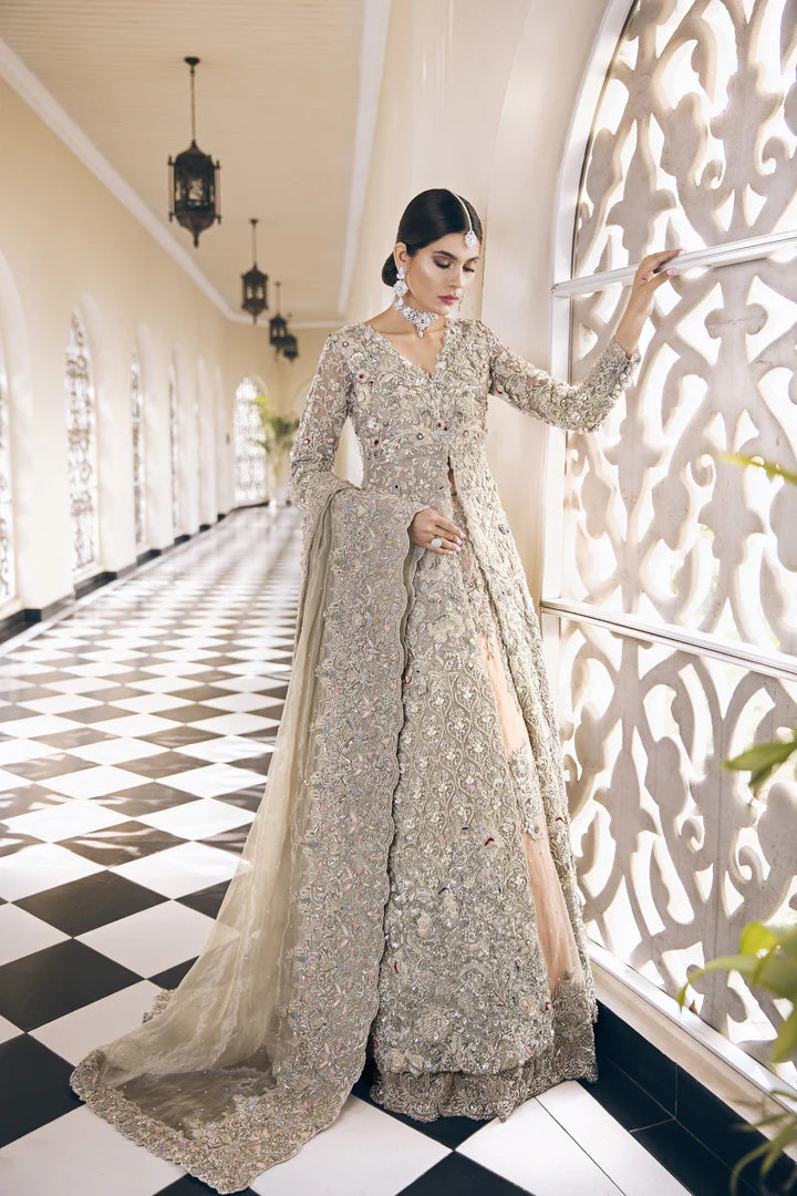 Latest bridal Pakistani designer waleema outfit in lavish peach color # B3443