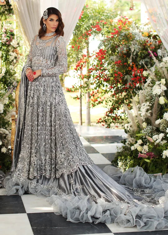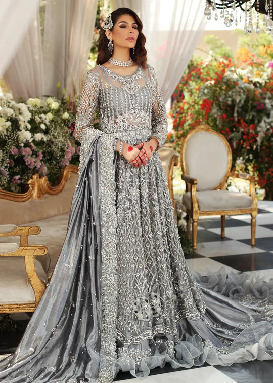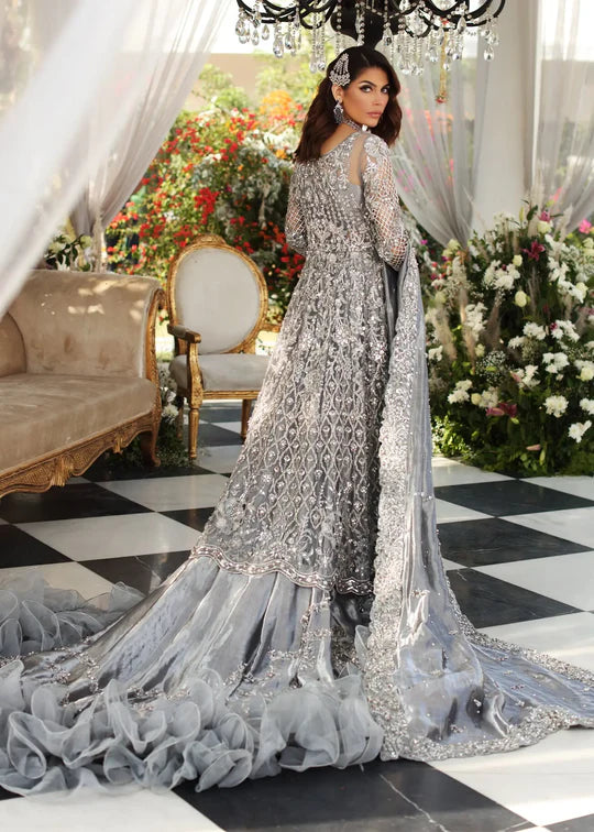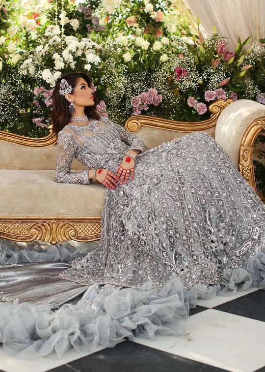 Introducing "Taabir" from Reema Ahsan Bridal Lounge, an enchanting masterpiece in luxury bridal clothing designed to make you feel like royalty on your special day. This mesmerizing ensemble, with its celestial hues and meticulously handcrafted details, creates a never-before-seen look that exudes elegance and sophistication.
